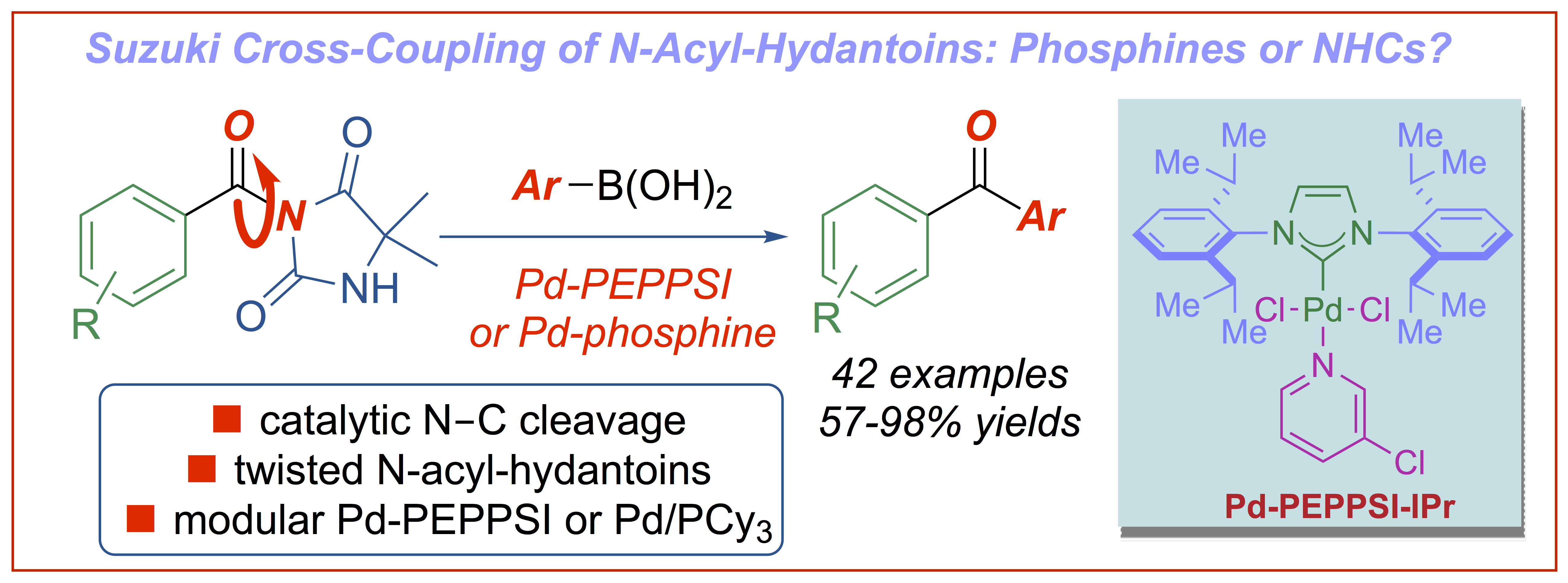 Suzuki cross-coupling of amides N-acyl-hydantoins